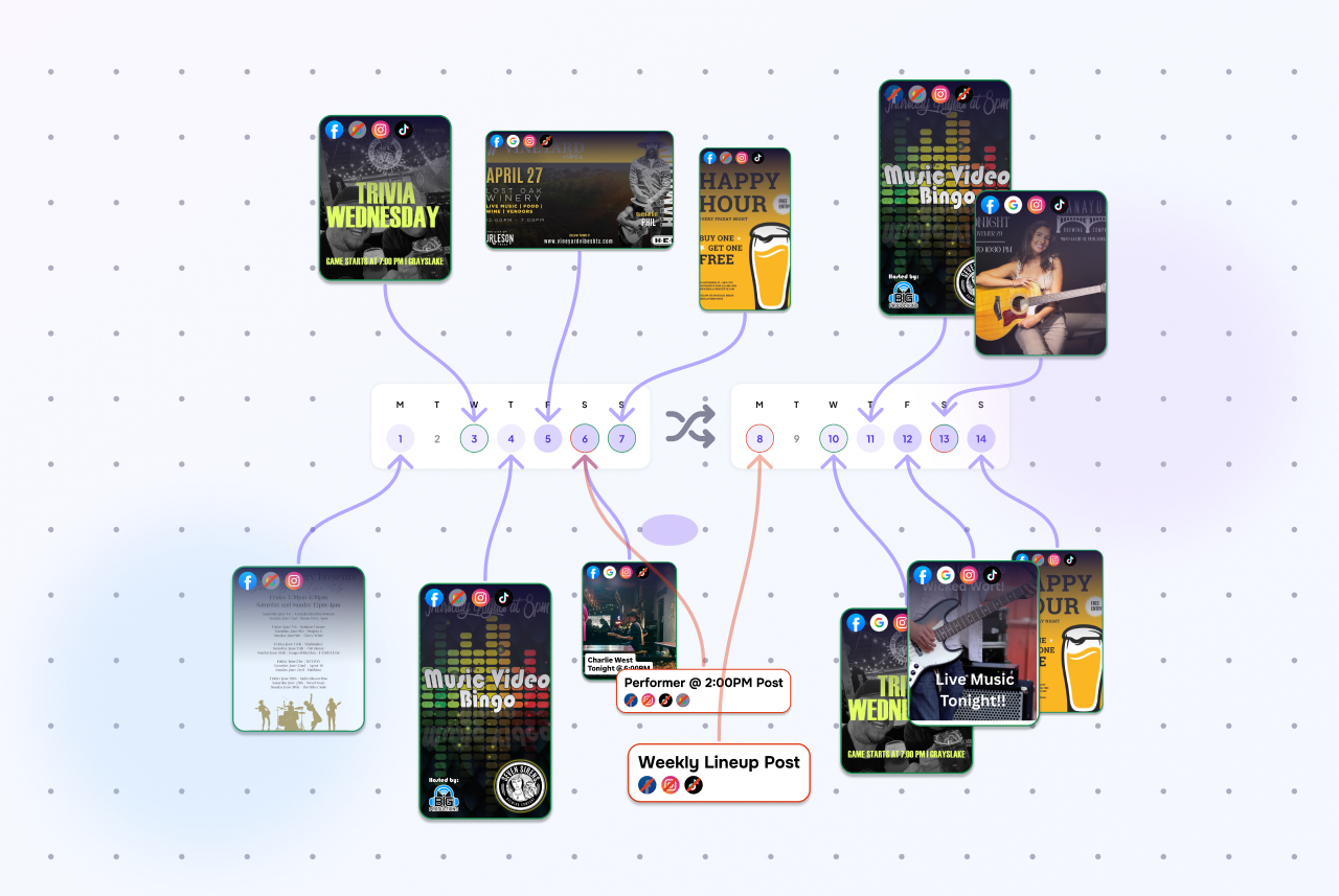 Local venues are competing in the same social feeds as massive corporations with dedicated social teams, content calendars, designers, and ad budgets. These companies never miss a post. Their information is always clean, on time, and polished.